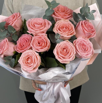 Буукет 11 розовых роз с эвкалиптом | Купить с доставкой в Егорьевске