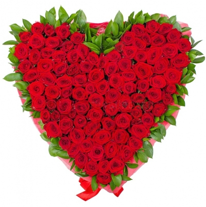 Композиция из 101 розы в виде сердца с доставкой в Егорьевске