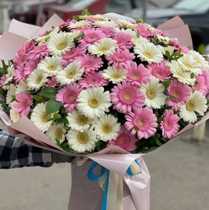 Букет из 101 белой и розовой герберой | Купить в Егорьевске