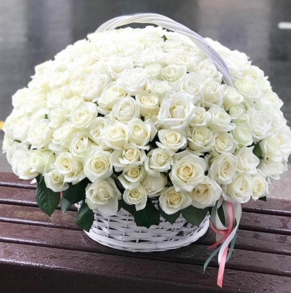 Корзина из 101 белой розы | Купить с доставкой в Егорьевске