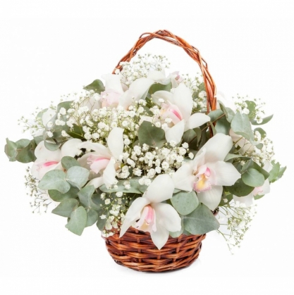 Корзина белых орхидей "Воздушный поцелуй" | Купить в Егорьевске